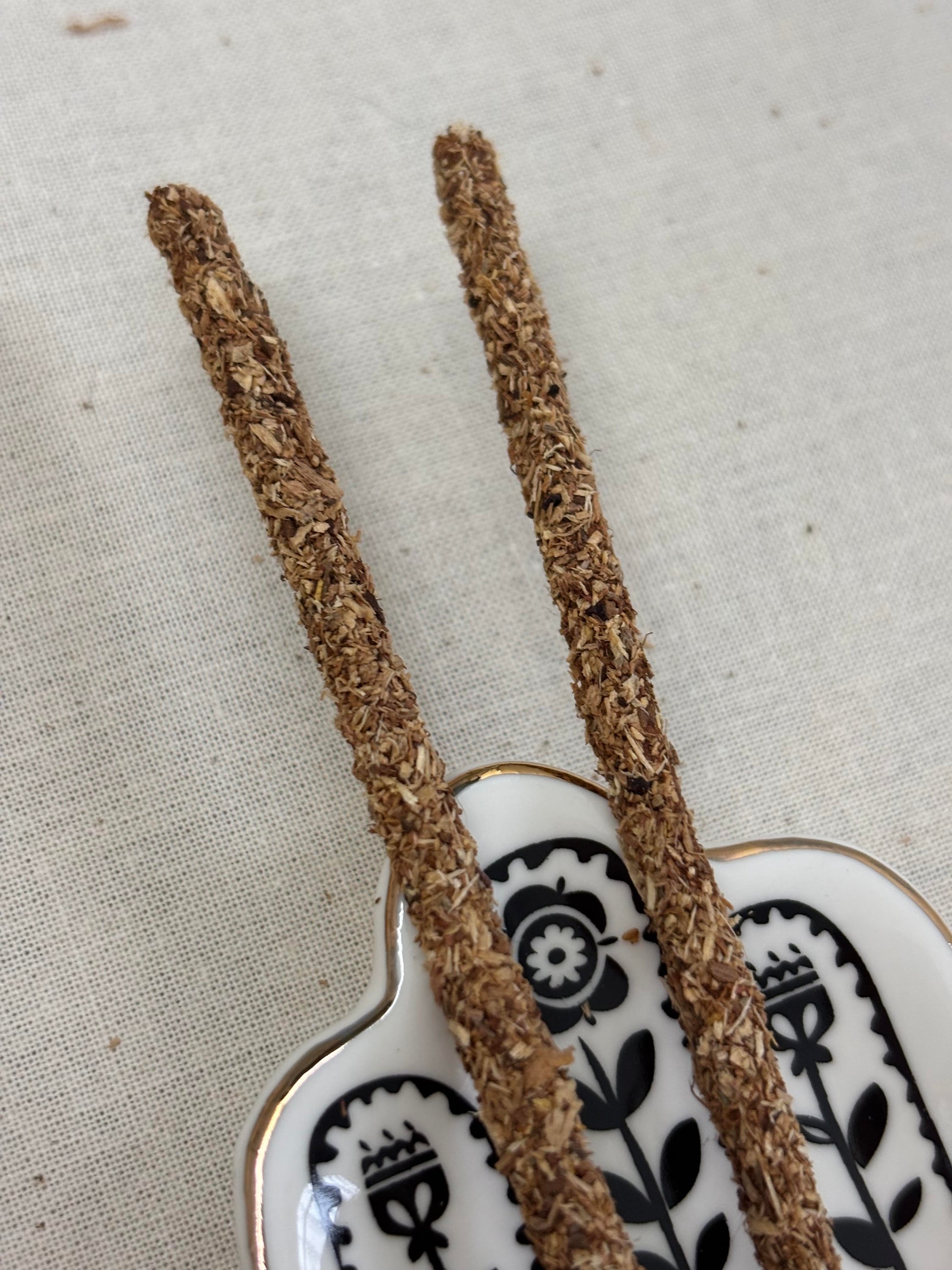 Modo de uso: Enciende la punta de la varilla y permite que el humo se expanda por el ambiente. Ideal para iniciar el día, limpiar energías densas o acompañar prácticas de escritura, estudio o meditación activa.